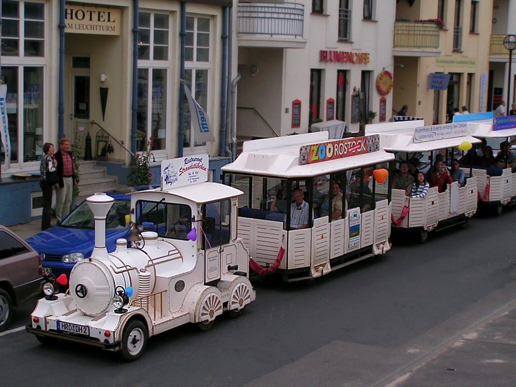 Strandbahn bimmelt durch die Straßen von Warnemünde;070825