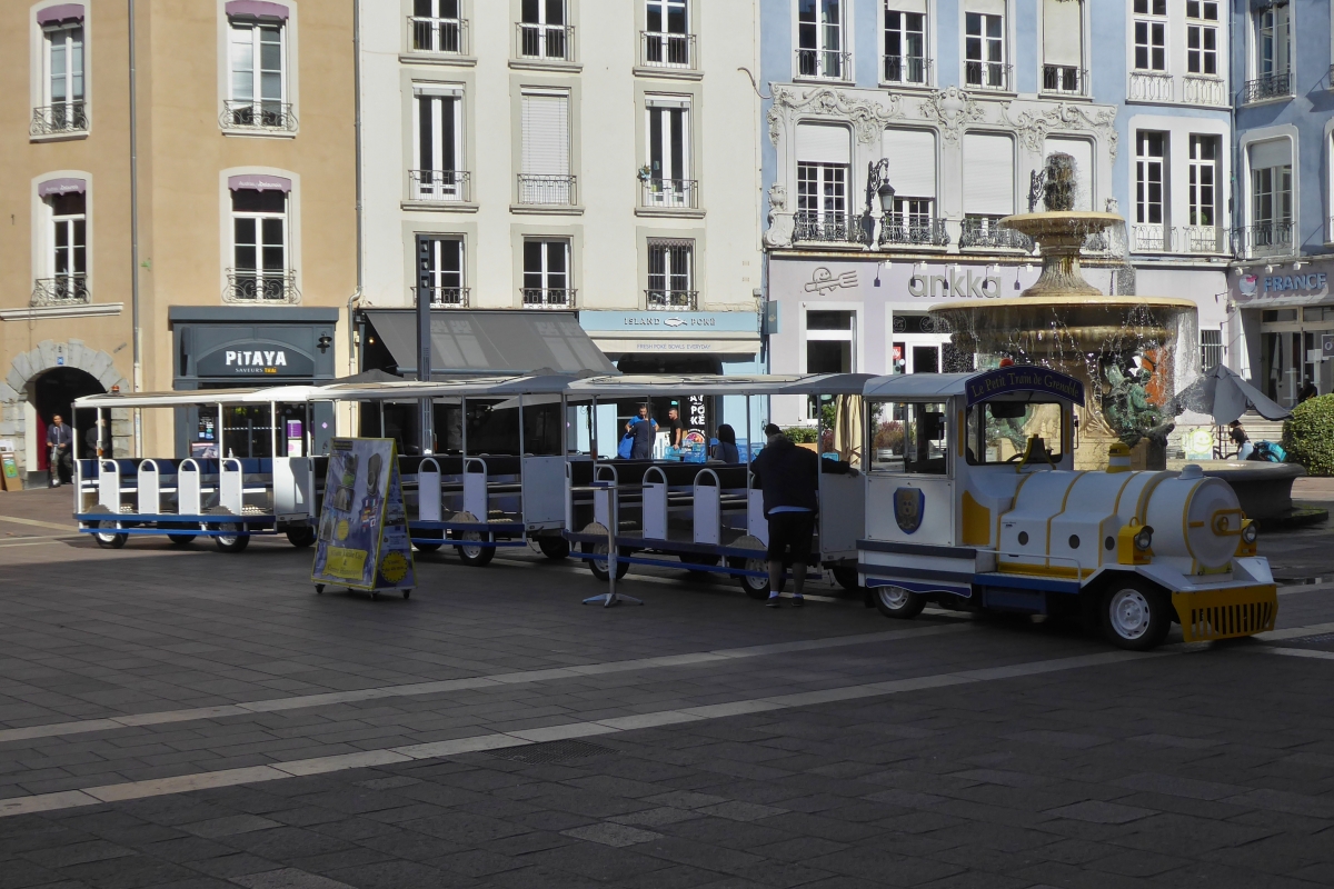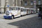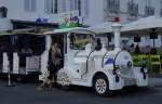 Am 23.07.2009 war diese 3-achsige Strassen-Eisenbahn in der bretonischen Stadt Vannes zu sehen, hier an ihrer Endhaltestelle am kleinen Jachthafen.