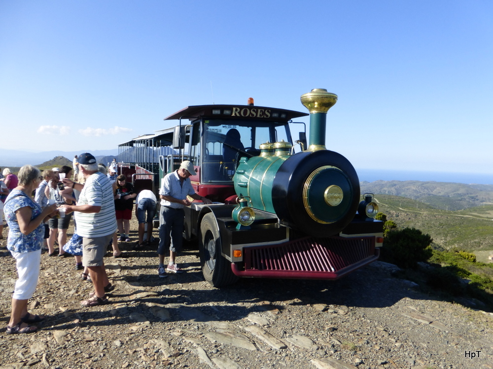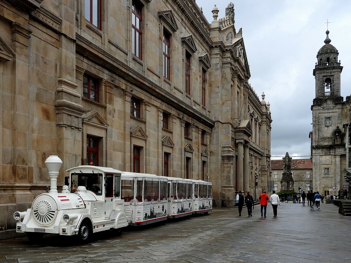 Obwohl fast die österr. Fahne an der Front des Bimmelzuges in Santiago de Compostela prangert (und geradezu einladend wirkt), wird dieser nicht genutzt, sondern werden die paar Meter bis zum (End)Ziel des Jakobsweges auch noch zu Fuß absolviert; 221016 JohannJ