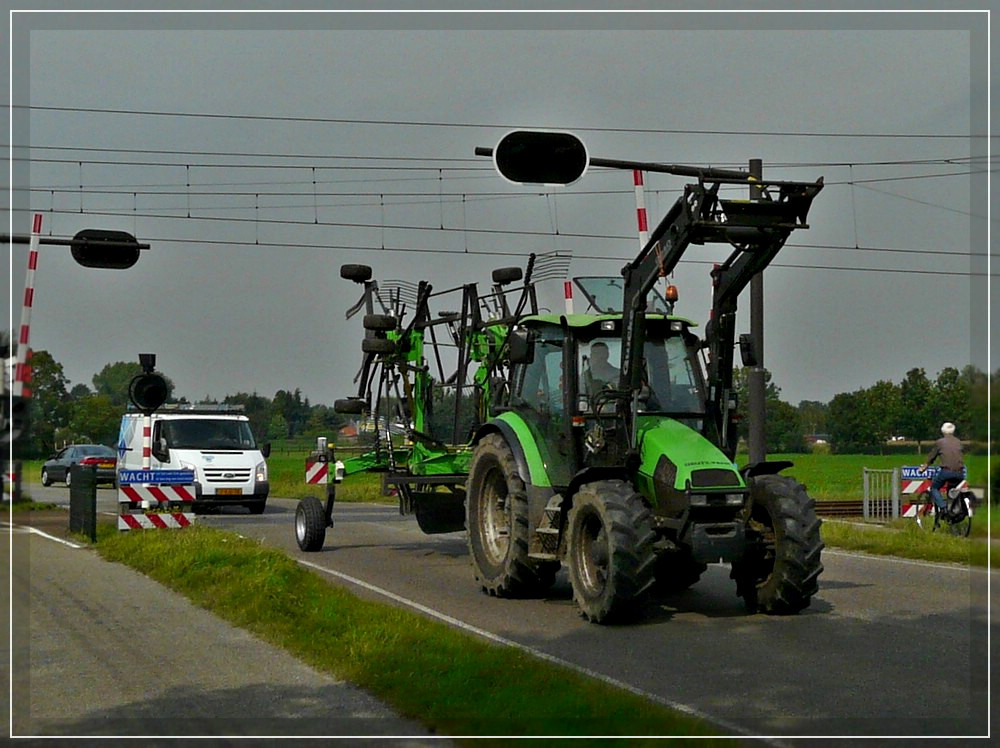 Am 02.09.2011 fährt mir dieser Deutz Traktor mit Heuwender bei Hoeven vor die Kamera.