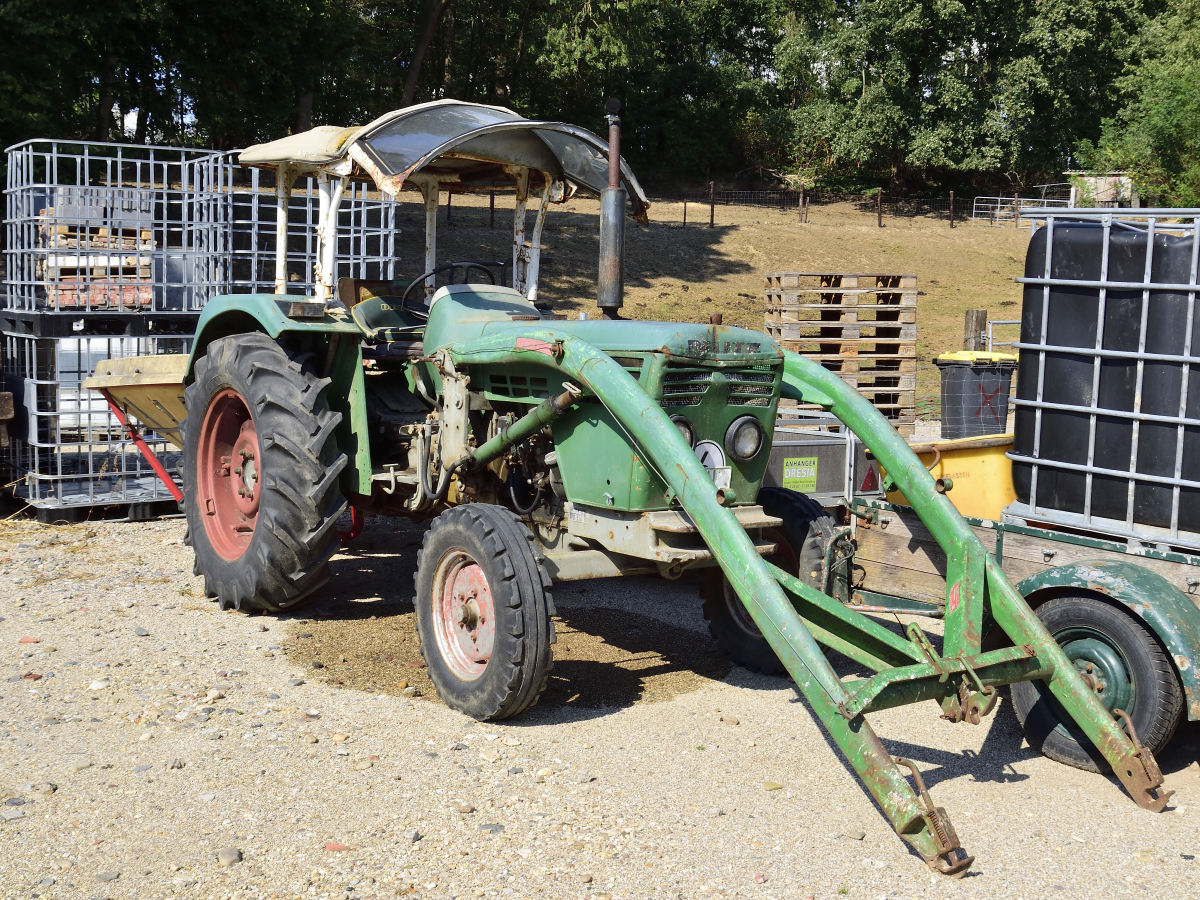 Deutz Schlepper in nicht allerbestem Zustand, Deutz D 40 06 in einer Pferdehof Einfahrt am 2.9.2020