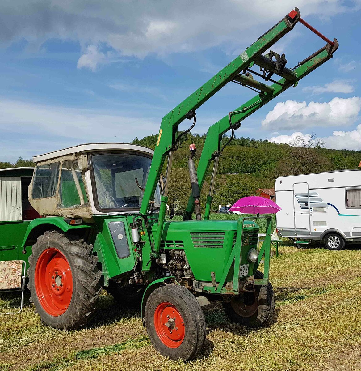 =Deutz 4506 steht auf dem Ausstellerparkplatz bei der Oldtimerausstellung der Traktorfreunde Wiershausen am Klostergut Hilwartshausen, 05-2023
