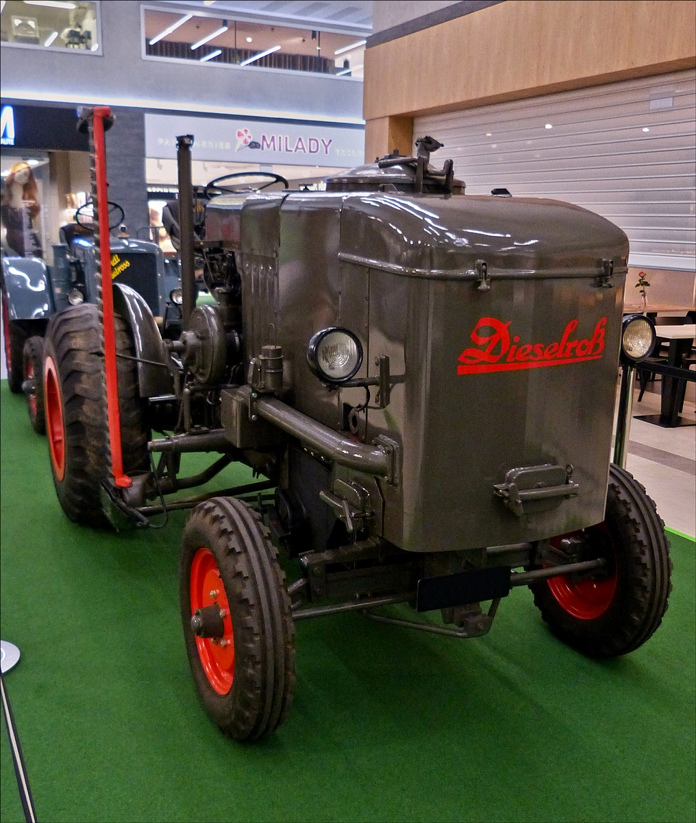 . Fendt Dieselross G25 Holzgas Traktor; Bj 1943; 25 Ps; ausgestellt im Hall eines Einkaufscentrums im Norden von Luxemburg. 08.05.2018