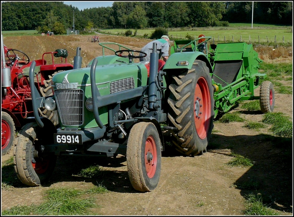 Fendt Farmer 2 mit einer etwas moderneren Kartoffelerntemaschine gesehen beim "Gromperefest" in Binsfeld (L) am 05.09.2010.