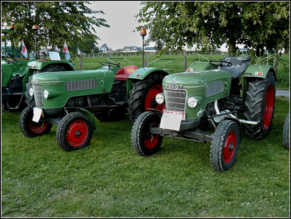 Rechts ein Fendt Farmer 1 BJ 1959, 2 Zyl, 28 Ps und links ein Farmer 2 von 1961 mit 3 Zyl, 2010 ccm, 34 Ps, gesehen beim Traktorentreffen in Weiswampach am 18.09.2010.