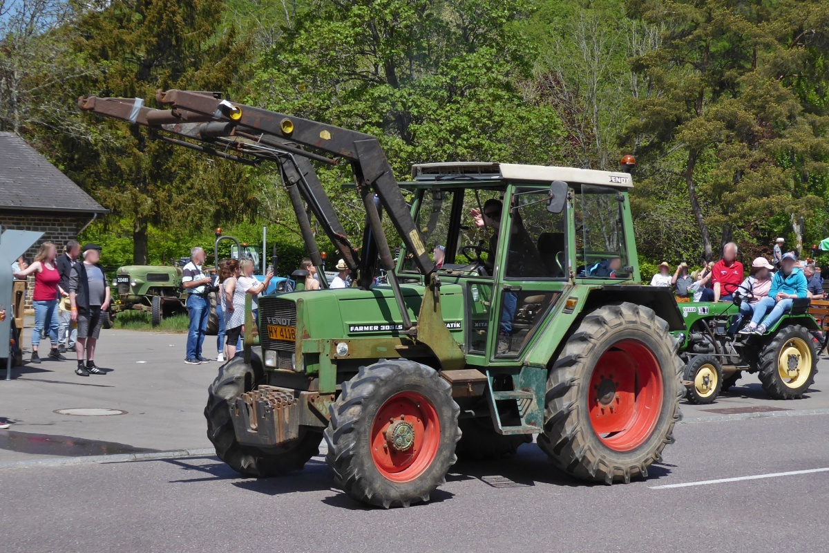 Fendt Farmer 305 LS, verlässt soeben den Versorgungspunkt nahe der Staumauer in Esch Sauer. 05.2022