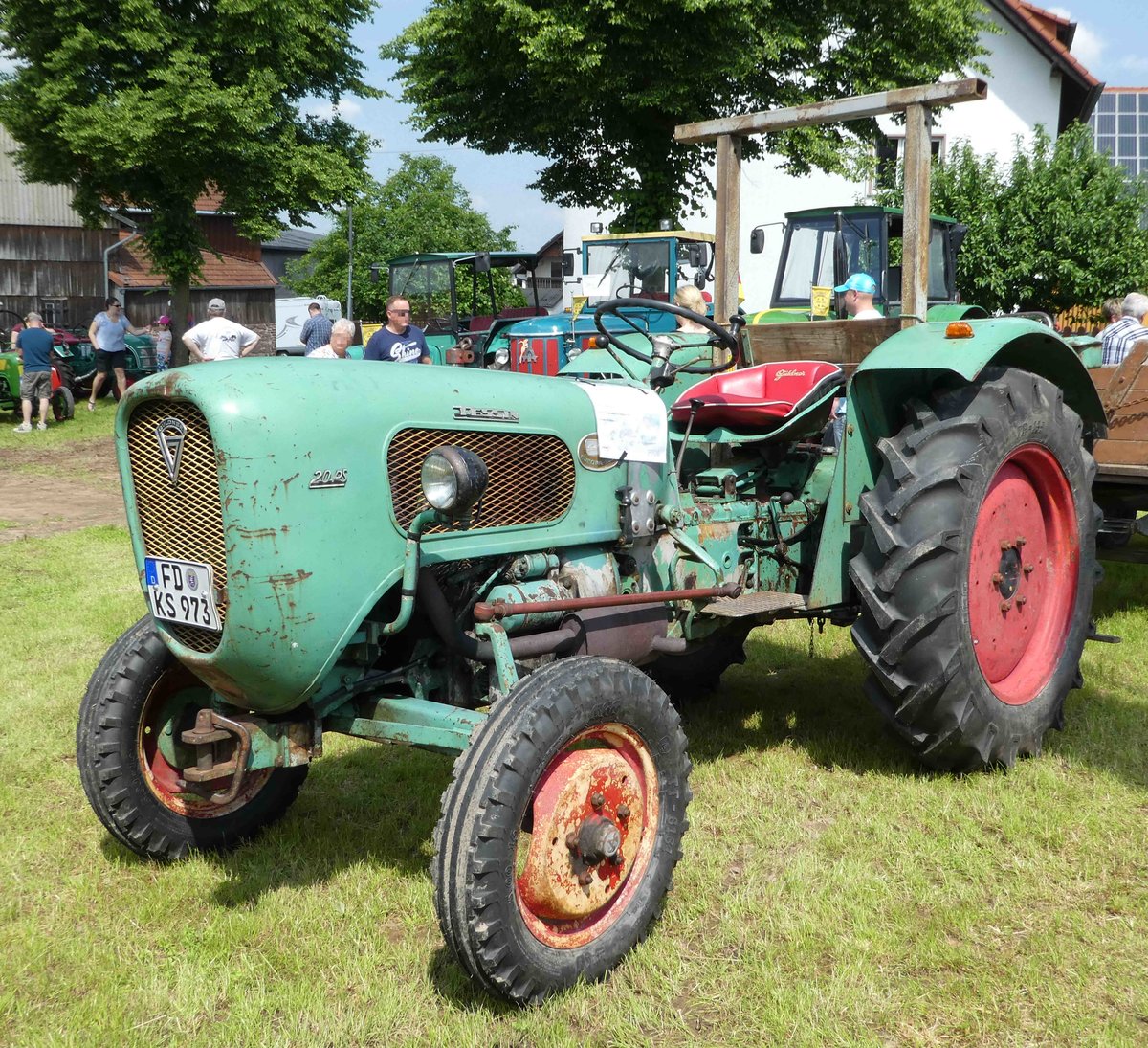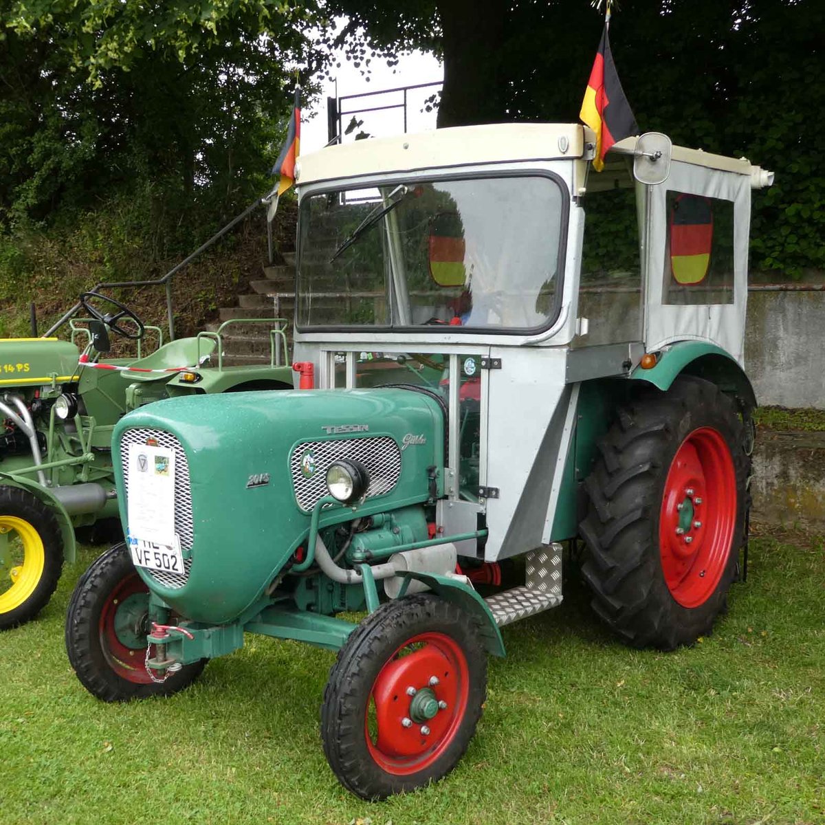 =Güldner Tessin steht auf der Ausstellungsfläche für Oldtimerfahrzeuge beim Bürgerfest "200 Jahre Landkreis Fulda" auf dem Gelände von Schloß Fasanerie im Juni 2022.