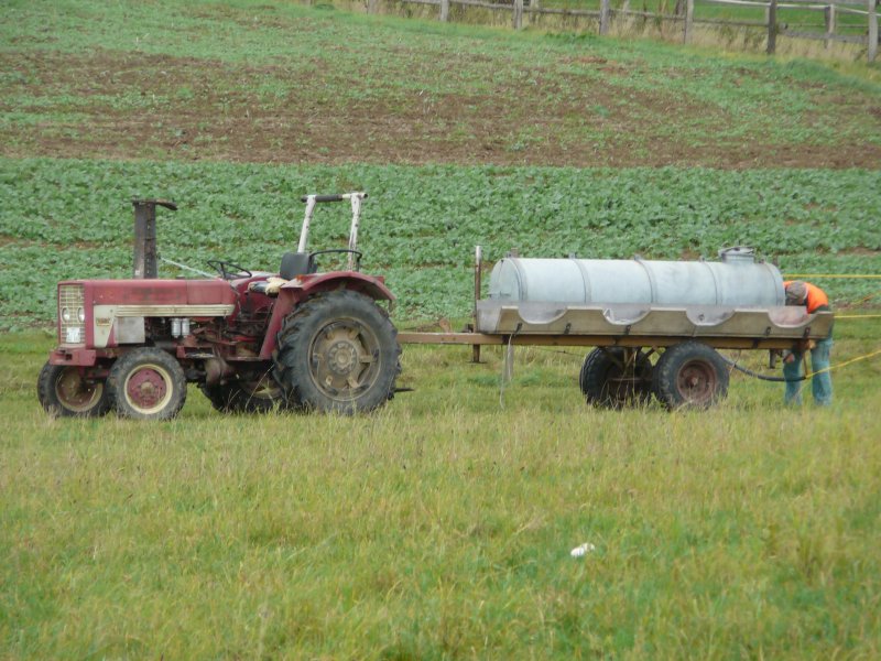 IHC 353 mit angehängtem Wasserfaßwagen zur Versorgung der auf der Koppel befindlichen Pferde am 07.09.2008 in 36100 Petersberg - Marbach