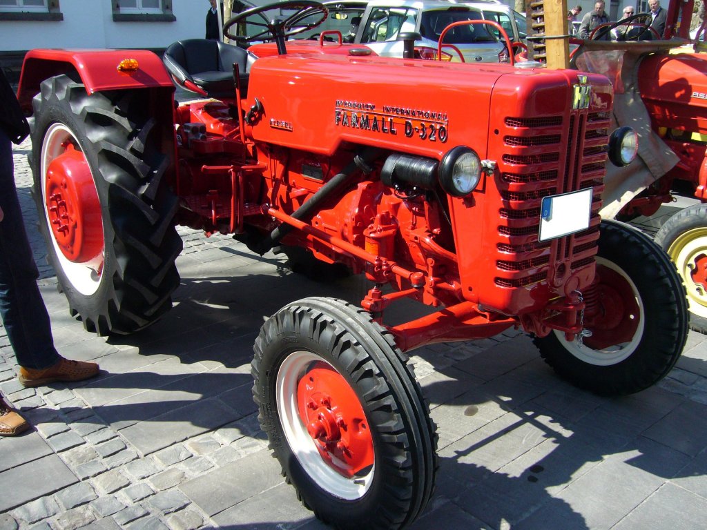 McCormick - International D-320 Farmall. 1956 - 1959. DerTypenbezeichnung D-320 kann man entnehmen, das es sich um einen 3-Zylinderdieselmotor mit 20 PS handelt. Der Hubraum beträgt 1.631 cm³. Von diesem Modell wurden ca. 13.300 Einheiten produziert. 6. Kettwiger Oldtimerfrühling am 01.05.2013.