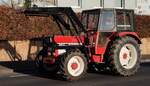 Roter International Harvester 733vor dem Bhf- Langnau an 19.02.2025