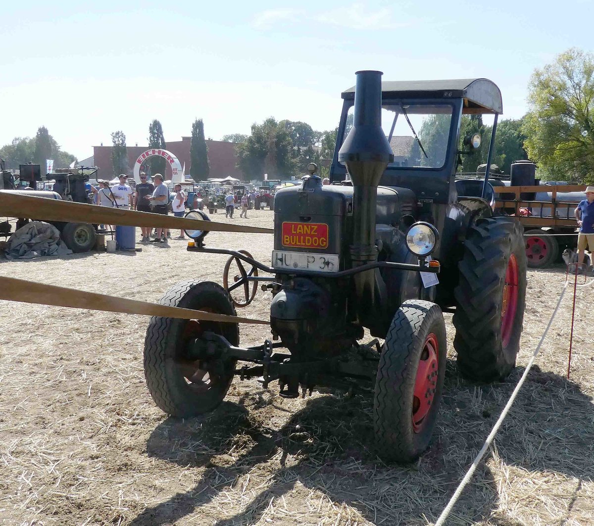 =Lanz steht zur nächsten Dreschvorführung am Baiersröder Hof im August 2018 bereit