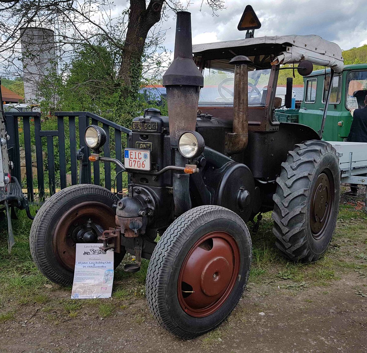 =Lanz-Bulldog, steht auf dem Ausstellungsgelände der Traktorfreunde Wiershausen am Klostergut Hilwartshausen, 05-2023