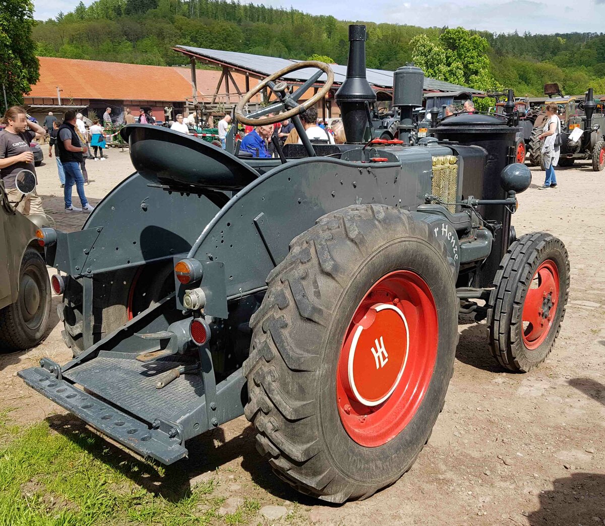 =Lanz in Holzgasausführung, gesehen bei der Oldtimerausstellung der Traktorfreunde Wiershausen am Klostergut Hilwartshausen, 05-2023