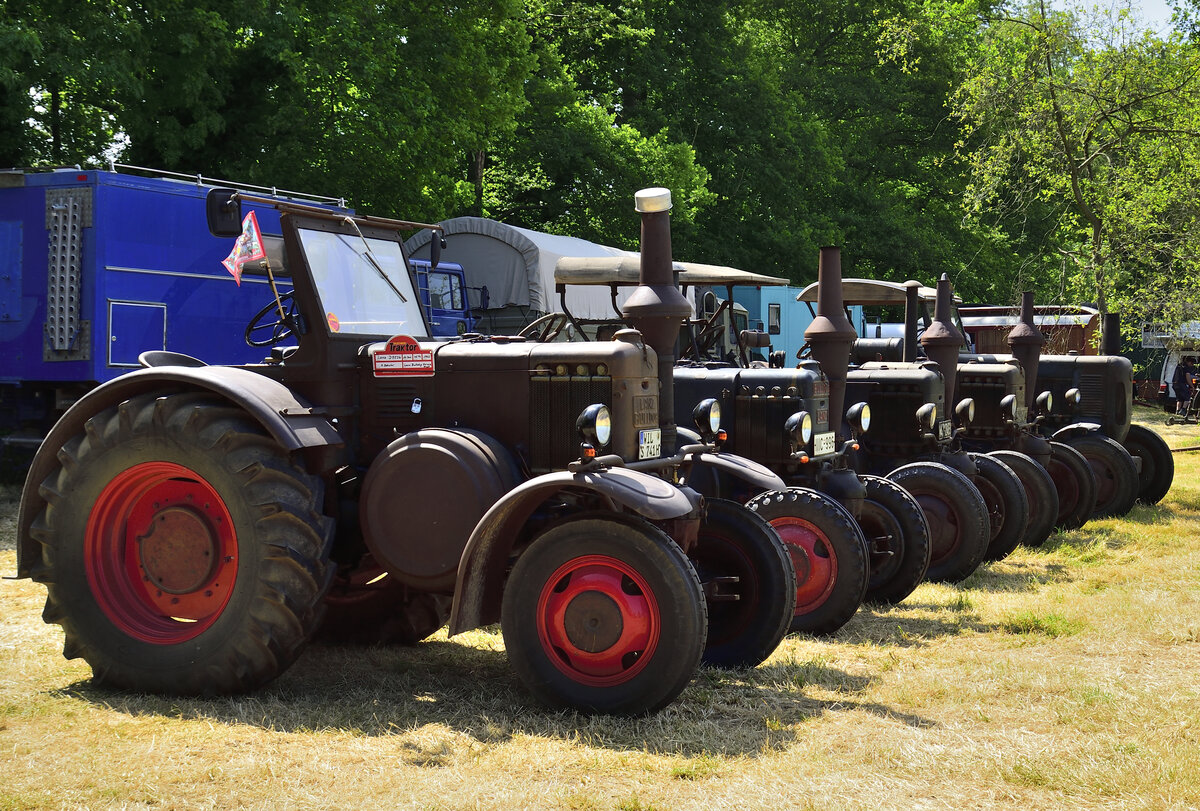 Lanz Bulldog aufgereiht, gesehen am 27.5.2023 in Tüddern Bauernmuseum Traktortreffen