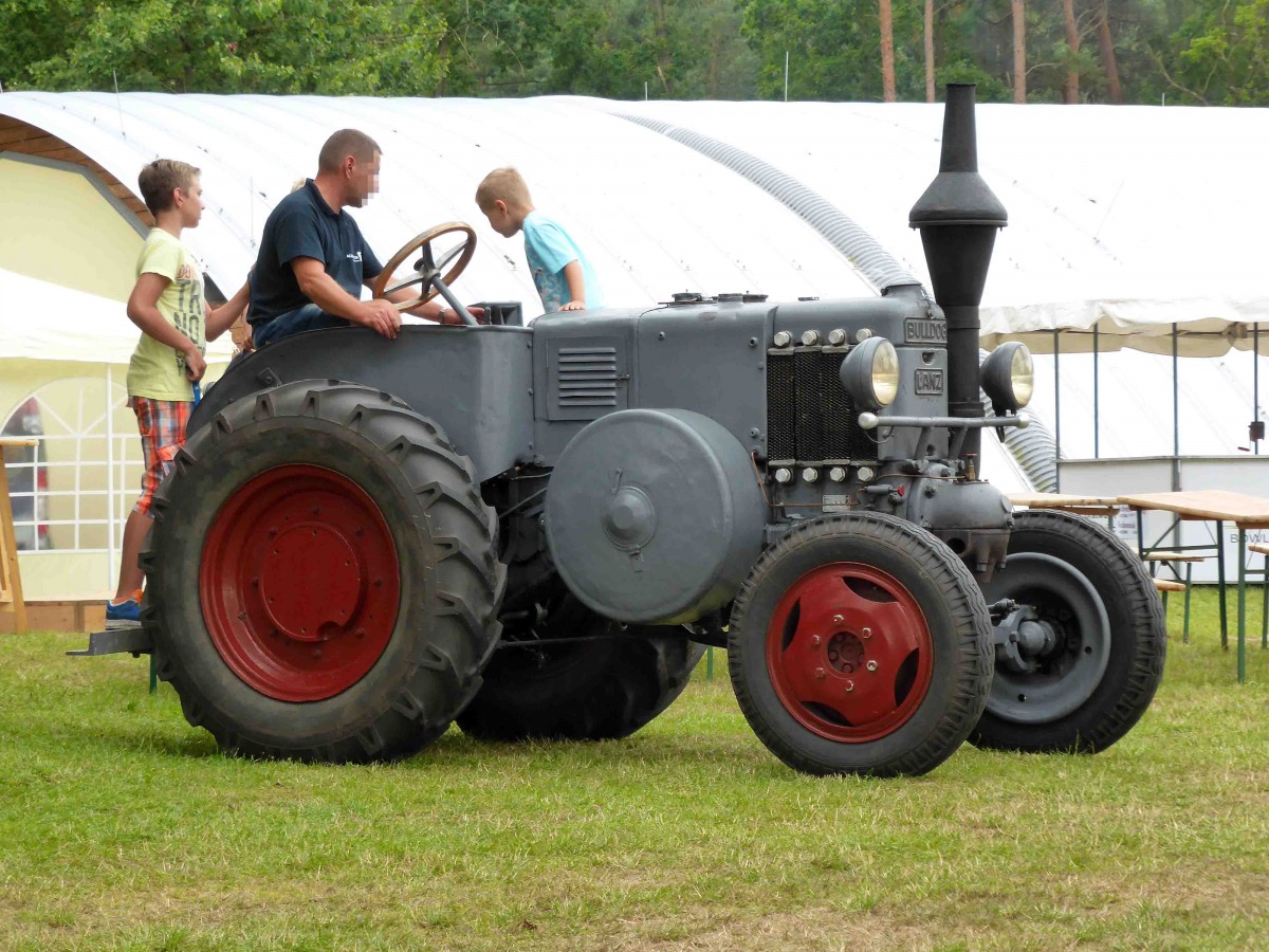 Lanz Bulldog rollt über das Austellungsgelände im Agroneum von Alt Schwerin im August 2014
