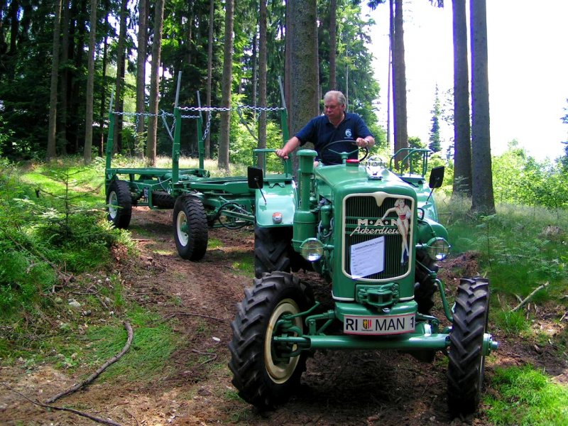 MAN-Ackerdiesel(40PS)absolviert mit Anhänger den Parkour einer Oldtimerrallye;080622