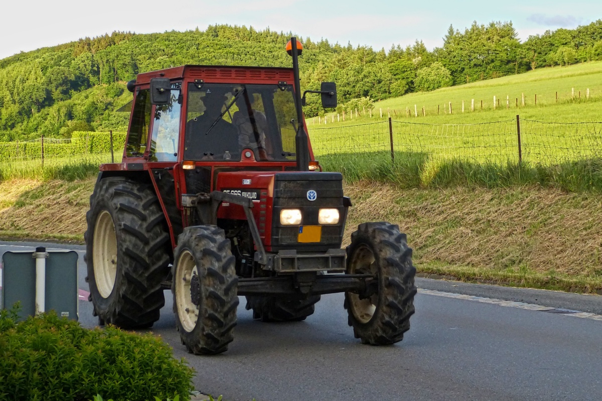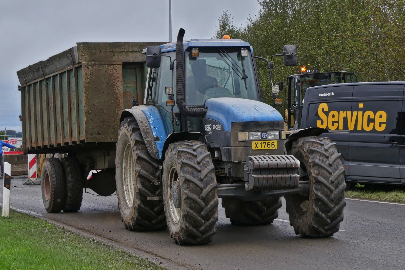 New Holland - Ford 8360, mit Hänger, gesehen an der Straßenbaustelle nahe Allerborn. 10.2024