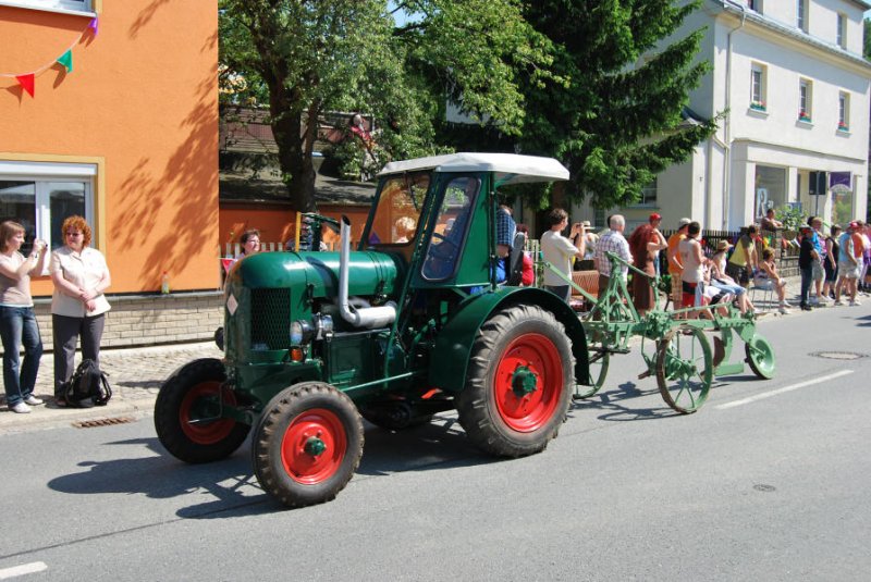 Ein historischer IFA-Traktor (Baureihe unbekannt) tuckert am 23.10.2016 am Bahnhof Hasselfelde vorbei. Die Aufnahme entstand während einer Sonderzugfahrt der IG HSB. Michael Edelmann