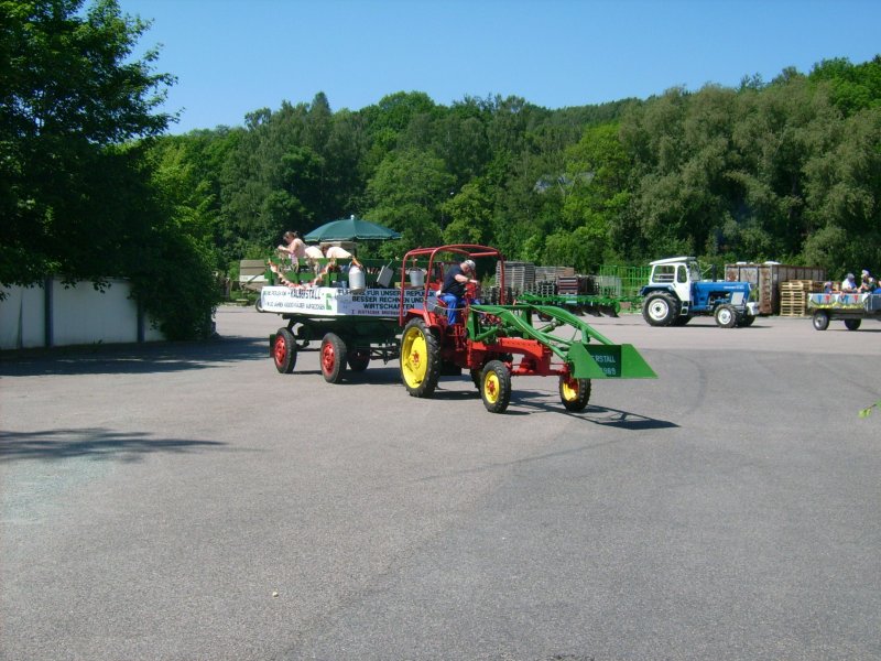 RS09 als Zugfahrzeug für den Kälberstall nimmt Aufstellung zum Umzug beim Heimatfest