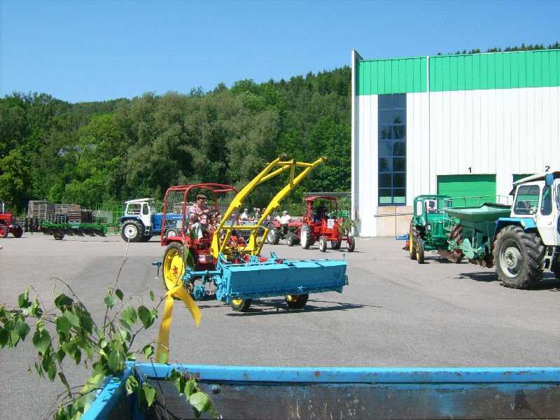 GT124 mit Vorbaustreuer und Hackrahmen nimmt Aufstellung zum Umzug beim Heimatfest.