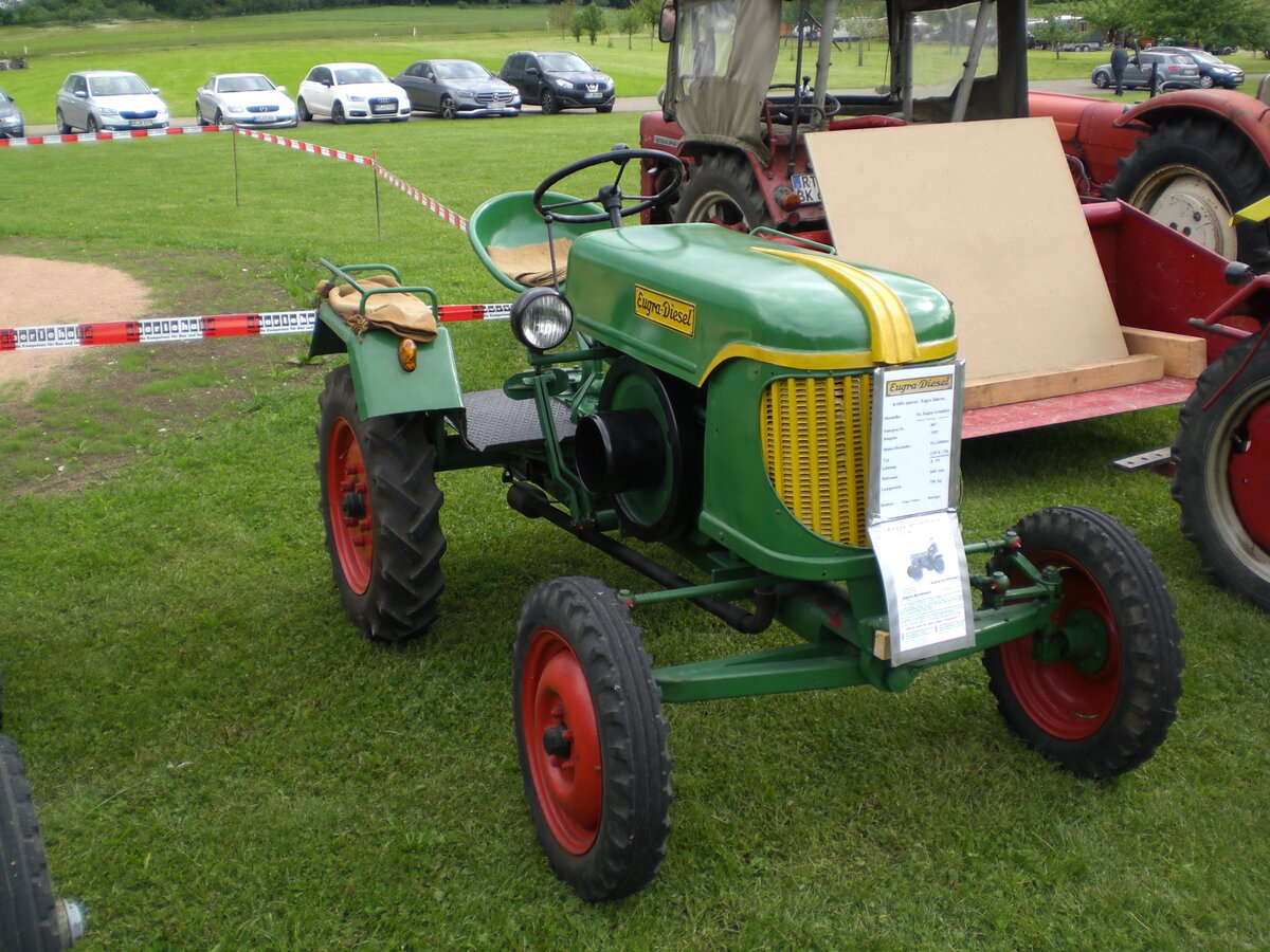 Eugra-Diesel ,Typ GW 8(Thermosiponkühlung), 8 PS, 648ccm ,Bauj.1952 ,Fa.Eugen Gramlich ,Siglingen/Jagst.Aufgenommen beim Traktortreffen in Römerstein auf der Schwäbischen Alb am 29.05.2022