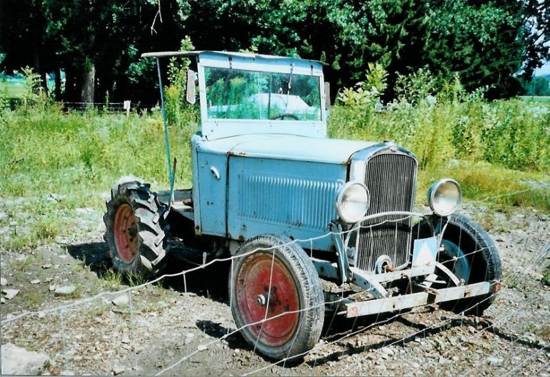Historischer Autofriedhof Gürbetal, Kaufdorf: Was früher etwa noch gemacht wurde; aus einem Auto ein landwirtschaftliches Fahrzeug. Dieser Traktor wurde aus einem Opel gefertigt. Am 27. Juli 2008