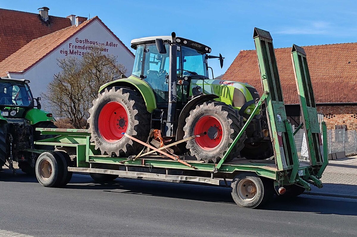 Claas Arion in Kommunallackierung steht bei einem Landmaschinenhändler zur Abholung,