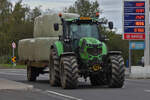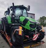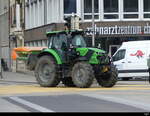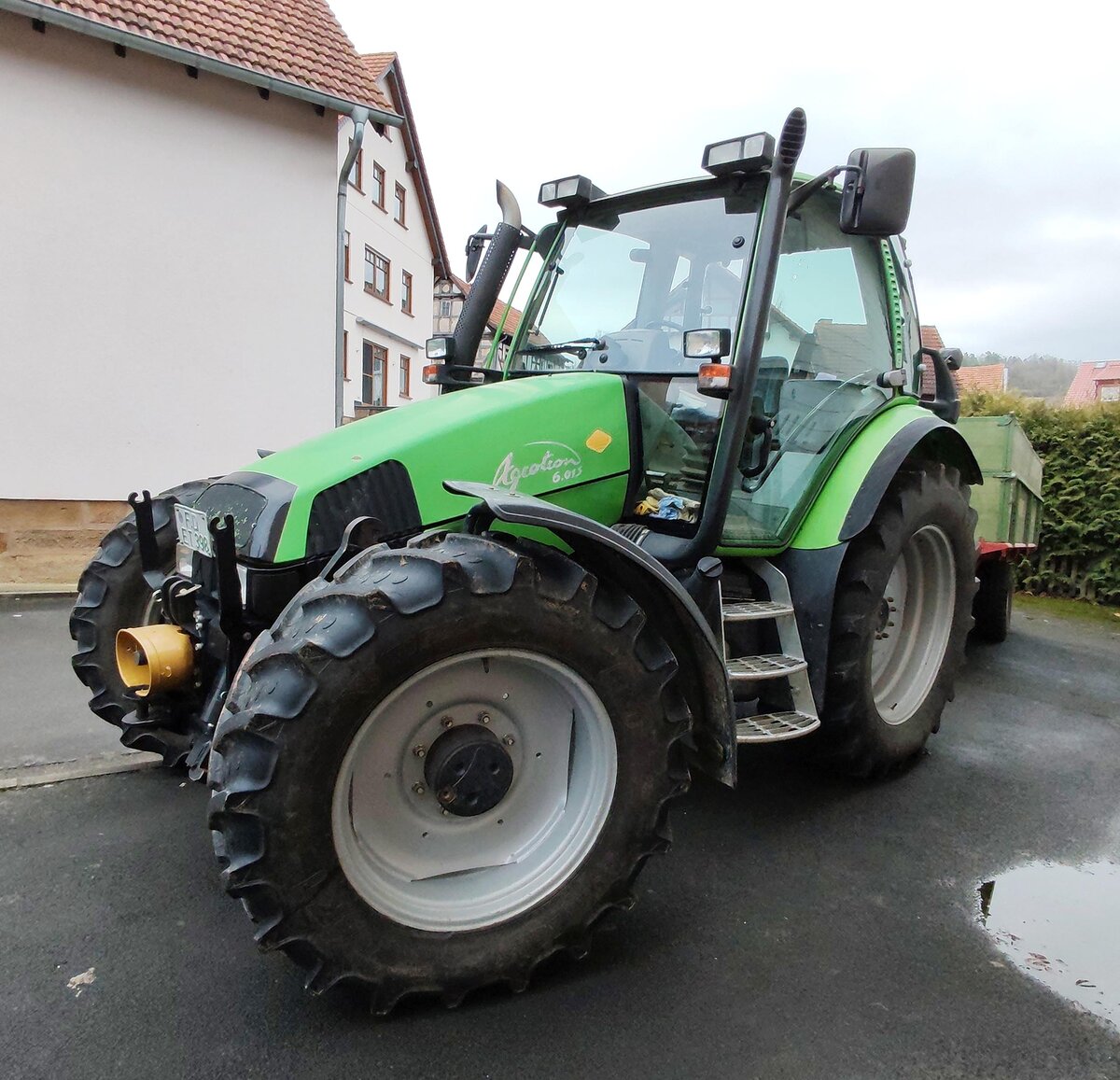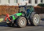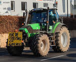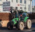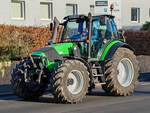 Seitenansicht eines Deutz Agrotron 135 MKS, der bei der Télévie Rundfahrt im Norden von Luxemburg mitfuhr. 21.04.2025