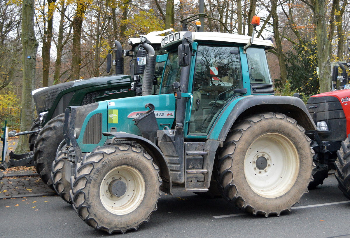 Ein Blauer FENDT 412 VARIO TMS am 26.11.19 Berlin Charlottenburg.