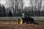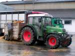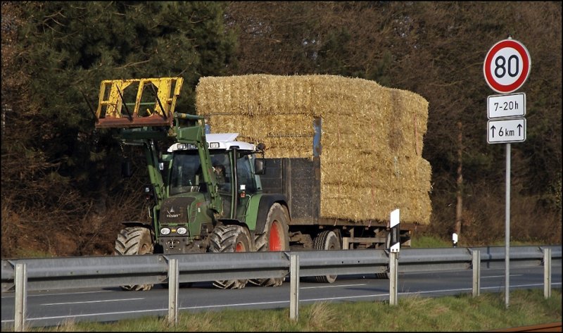 FENDT 312 (125PS) ist in den Abendstunden mit einem Ladewagen, beladen mit Stroh, bei Warendorf unterwegs. (31.03.2009)