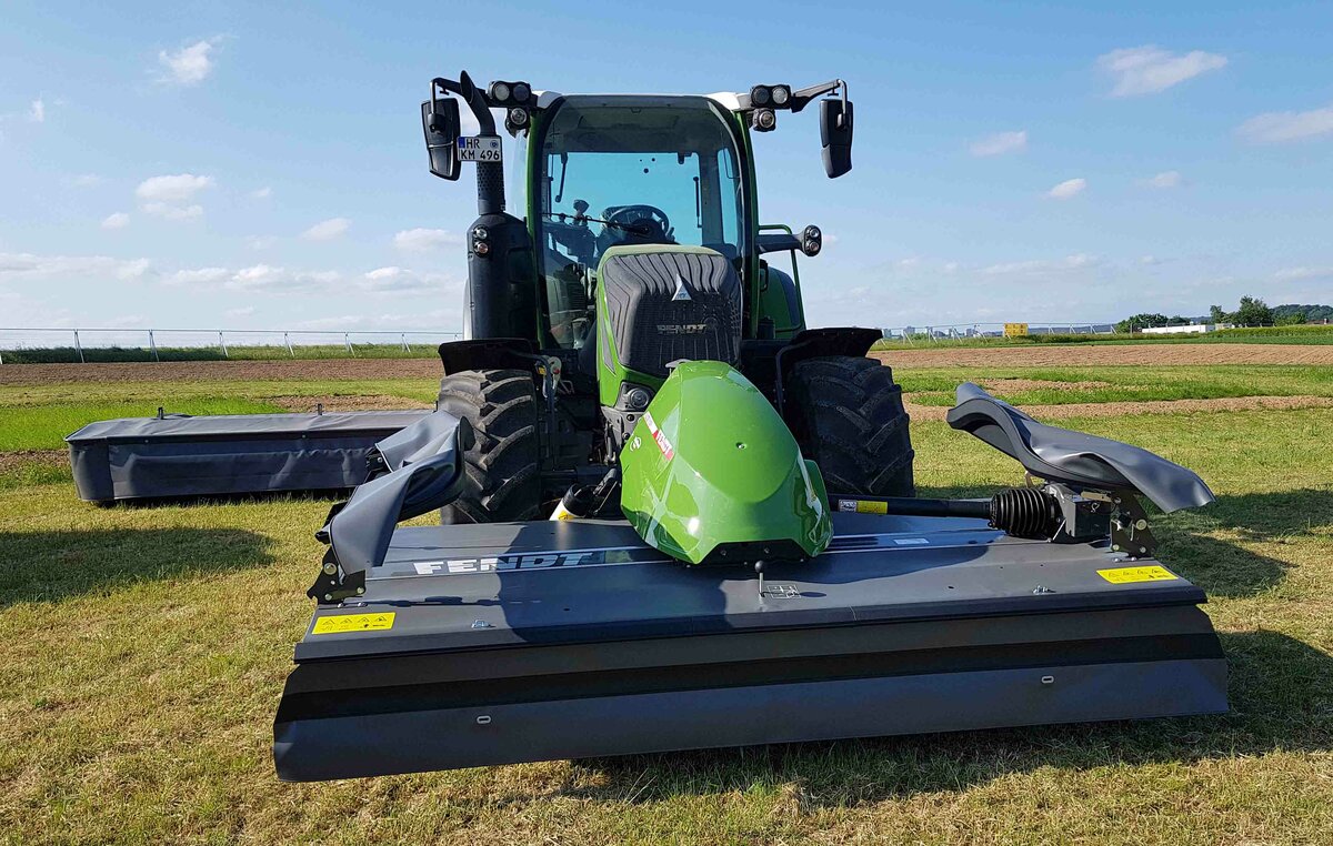 =Fendt 314 mit Fendt Slicer 310 F steht auf dem Austellungsgelände der LGS in Fulda, 06-2023