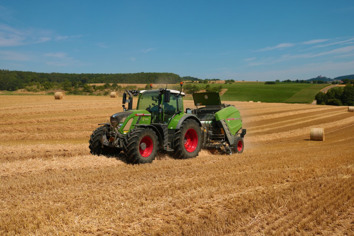 LU Schmidt Ronneburg beim Strohballen Pressen mit einen Fendt Vario 724 und Fendt Rotana 160V am 20.07.22 im Main Kinzig Kreis