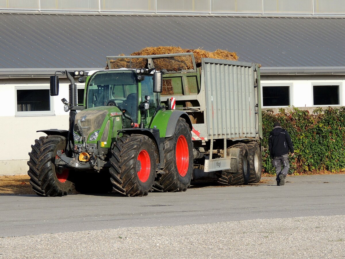 FENDT-724 Vario mit Rindermist beladenem Fliegl Tandemachshänger; 231018