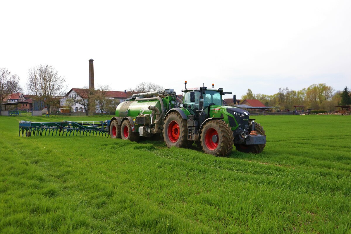 LU Norbert Mäser Fendt Vario 933 mit Kumm Güllefass am 06.04.23 beim Gärreste Fahren in der Wetterau