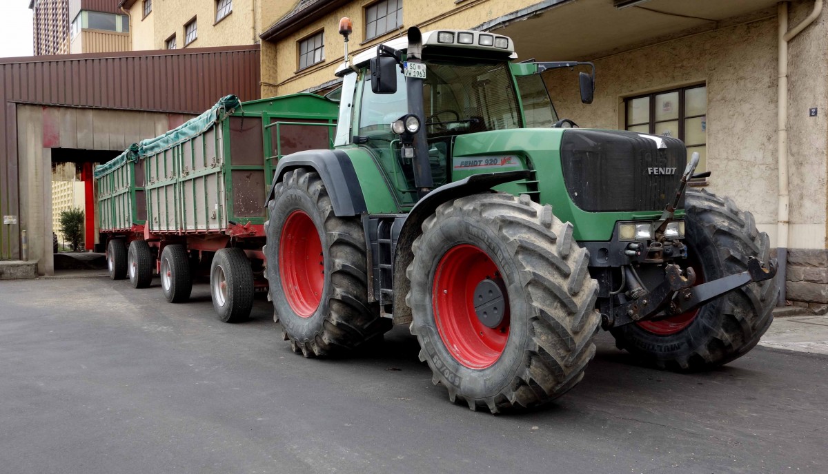 Fendt 920 Vario steht mit 2 Anhängern bei der Getreideablieferung in 36088 Hünfeld, August 2014