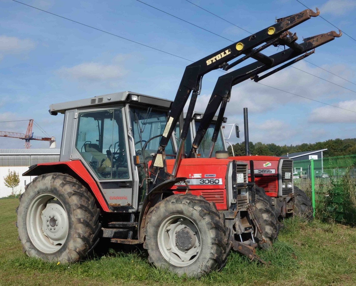 MF 3060 und 3655 stehen bei einem Landmaschinenhändler in Burghaun-Gruben im Oktober 2015