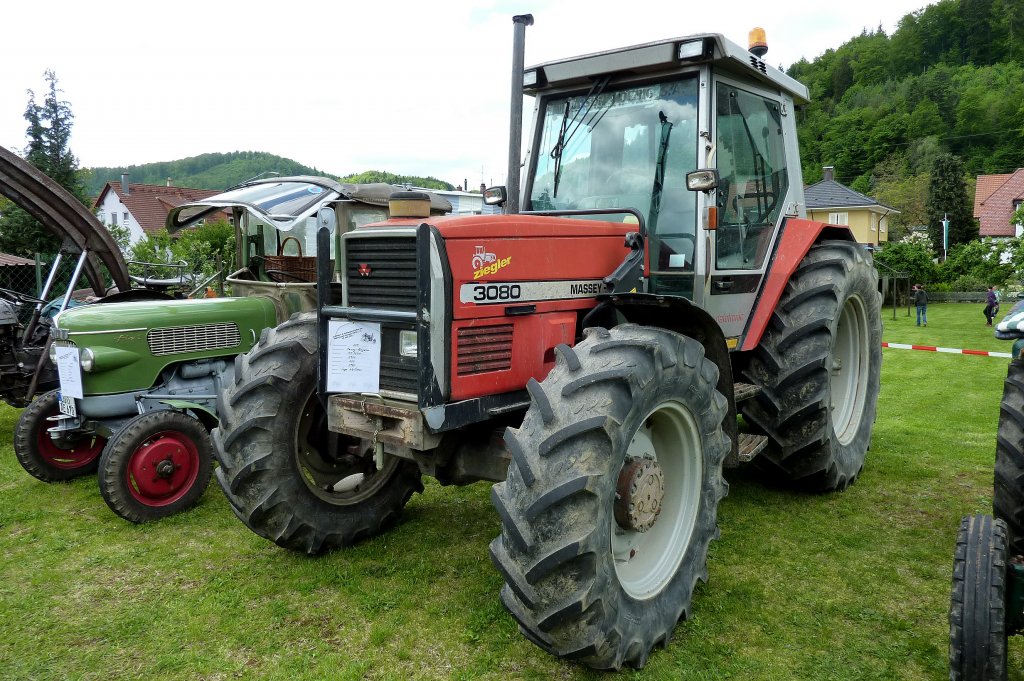 Massey Ferguson 3080, Allradschlepper mit 5900ccm und 100PS, Baujahr 1988, Schleppertreffen Hausen i.W., Mai 2012