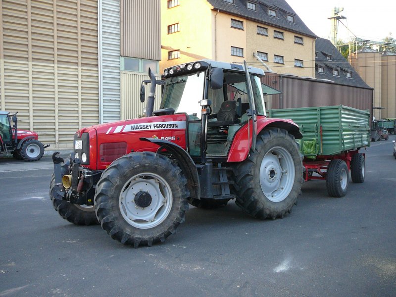 MF 5465 steht mit Anhänger auf den Betriebshof der Raiffeisenwarenzentrale in 36088 Hünfeld, August 2009