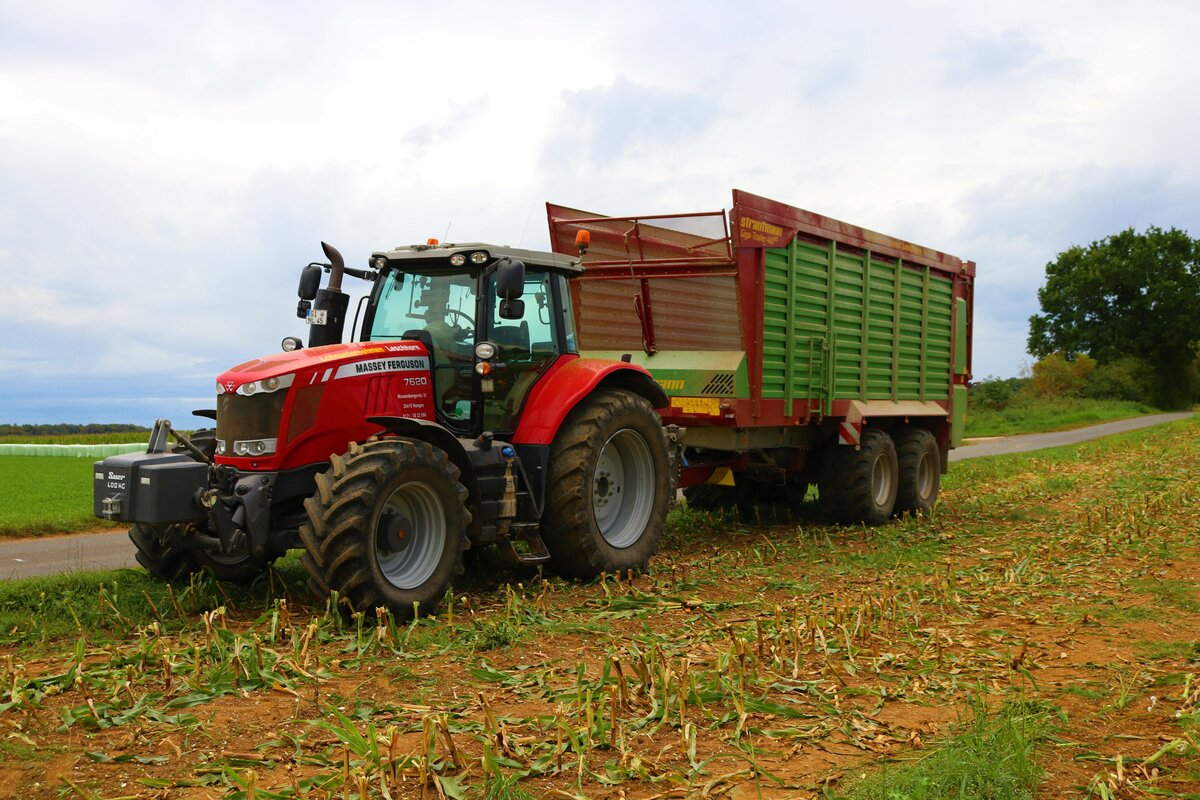 Massey Gerguson 7620 mit Strautmann Häckselwagen am 21.09.23 beim Mais Häckseln des Maschinenring Wetterau