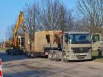 Ein Massey-Ferguson 7495 (200PS) mit Mammut Tandem-Muldenkipper vom Landw. Lohnunternehmen Gebr. Kamp aus Geilenkirchen am 08.02.2011 auf der Campusbaustelle der Rwth in Aachen. Damit der Traktor seine Kraft auch auf die Vorderräder bringt, hat er ein 800kg Gewicht an der Fronthydraulik hängen.