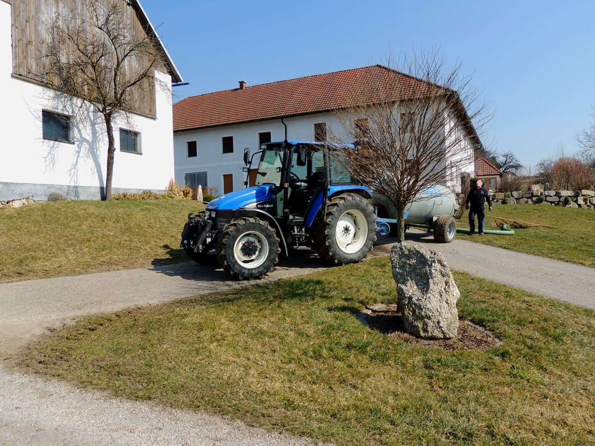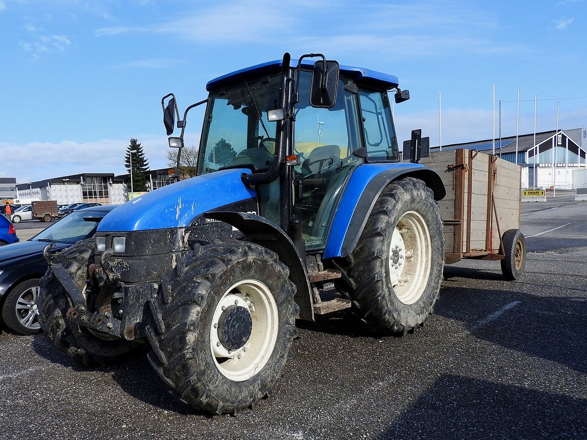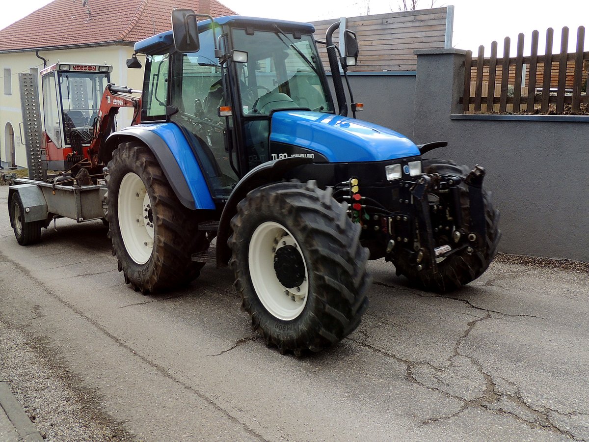 New-Holland TL90 steht mit einem Einachshänger am Messegelände in Ried i.I.; 090113