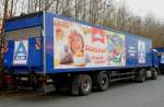 ALDI Markt Heckansicht eines Koffersattelzuges mit Werbung der Aldie exclusiv Marke Gletscherkrone ®