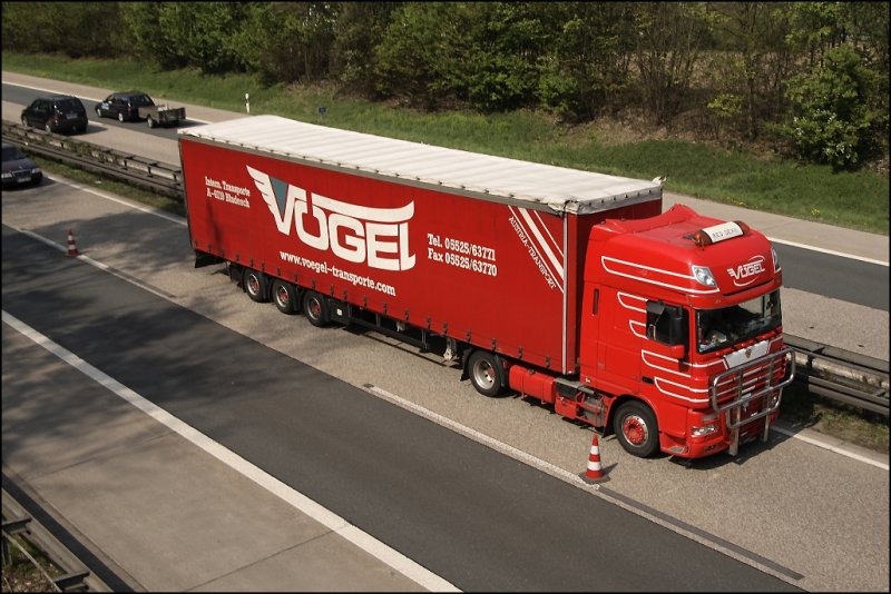VÖGEL SPEZIAL No6: RED DEVIL: DAF XF105.460SCC "SuperSpaceCab" der VÖGEL Spedition aus Bludesch/Vorlaberg. Dieser Truck besitzt eine "Bullenfänger" und ist dem Standort Schaanwald in Lichtenstein zugeordent.