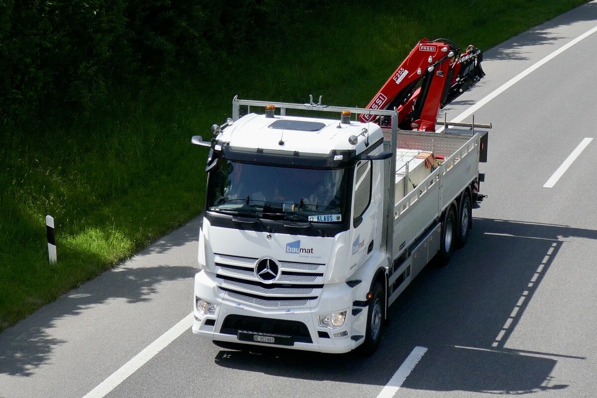 Ein MB Drei MAN und Drei Volvo von baumat am 24.6.17 am Trucker Festival in Interlaken.
