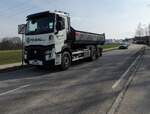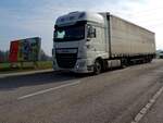 DAF-XF480 zieht den Schenker-Auflieger auf der nun abfallenden B143 in Richtung Stadt Ried; 230303