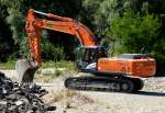 Radweg am Altrhein, rechts die Stützmauer der Autobahn A5 bei Rheinweiler, Juli 2015