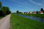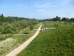 der Rad-und Fußweg getrennt von der Straße überquert auf der Pflimlin-Brücke den Rhein südlich von Kehl, Okt.2016