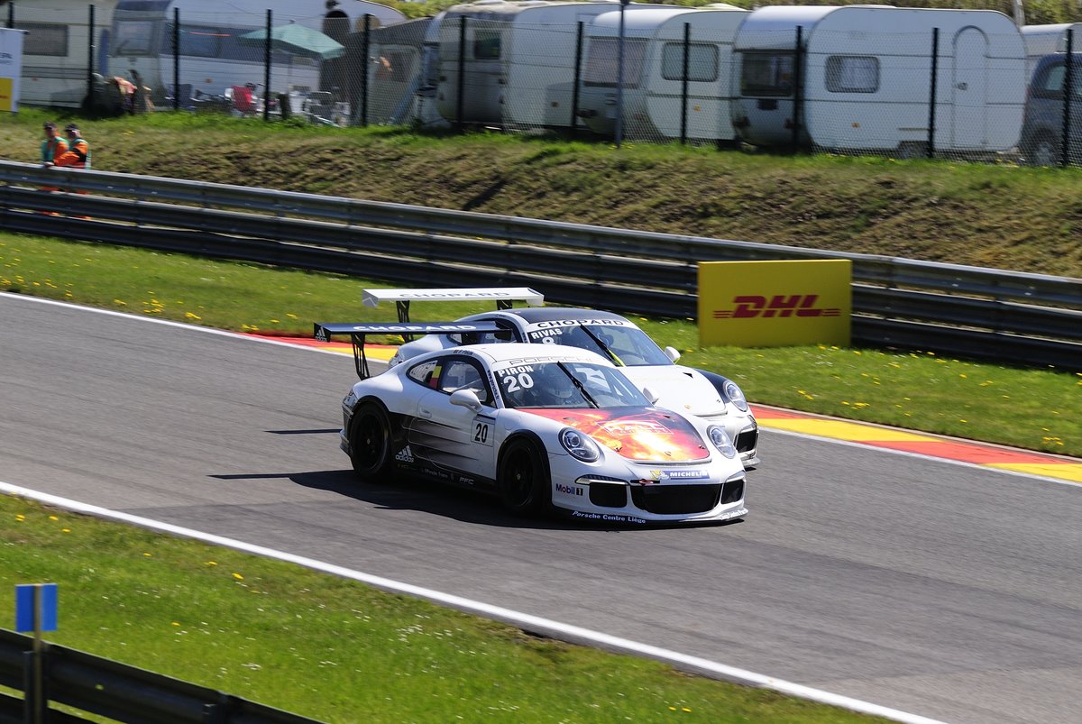 Nr.22 PIRON, Pierre, Team Mediacom auf Porsche 991 GT3 Cup, beim überholen der Nr.8 . Porsche Carrera Cup Benelux, 7.5.2016 in Spa Francorchamps