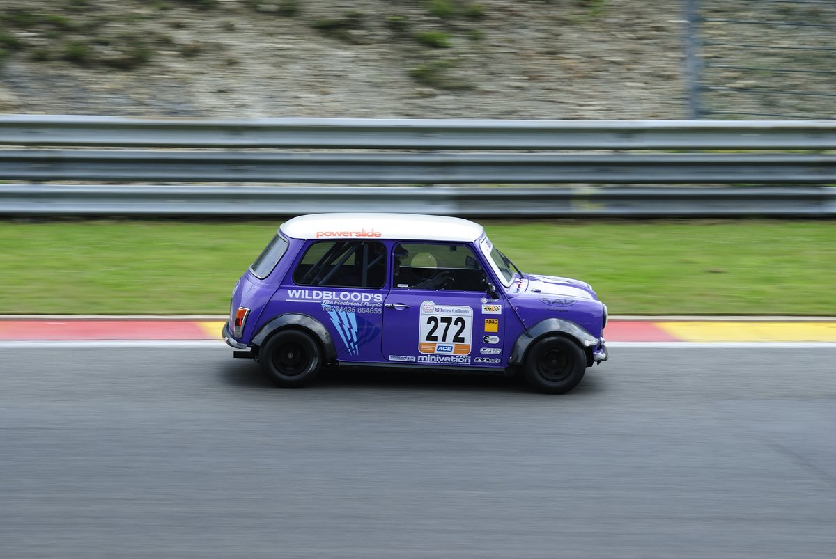 Rudi Munten (BE), Austin Mini beim "Kampf der Zwerge" auf dem Formel 1-Kurs von Spa-Francorchamps, beim Youngtimer Festival Spa 24 July 2016
