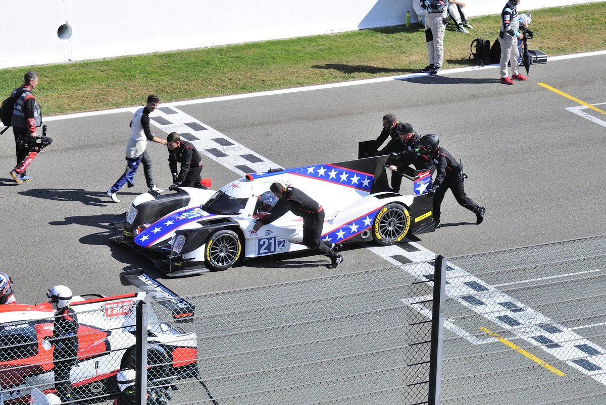 Nr.21 LMP2 DragonSpeed, Oreca 05 - Nissan, wird zum Startder European Le Mans Series geschoben, 25.9.2016 in Spa Francorchamp